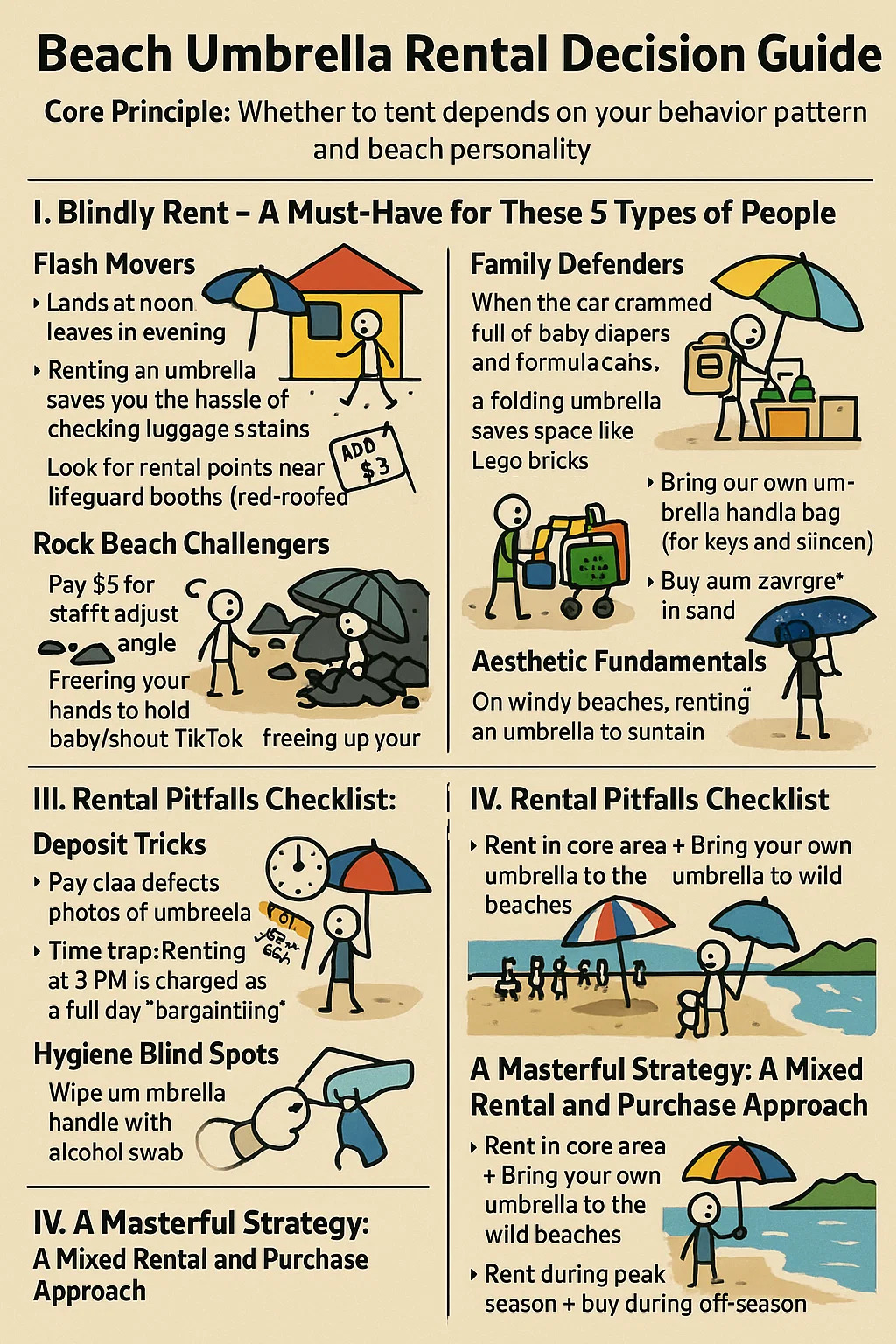 Rock Beach Challengers: 화산 바위 해변에 우산을 넣을 수 없음 → 확장 볼트로 고정된 맞춤형 우산 대여: 게으름이 심한 경우: 직원에게 5달러를 지불하고 각도를 조정하고 우산을 부착하여 손을 자유롭게 하여 아기를 안고 TikTok 동영상을 촬영합니다. 모험을 좋아하는 사용자의 경우: 임시 탈의실로 측면 커튼이 달린 우산을 대여하거나 야간 사이버펑크 해변 사진을 위해 형광 우산을 대여하세요.